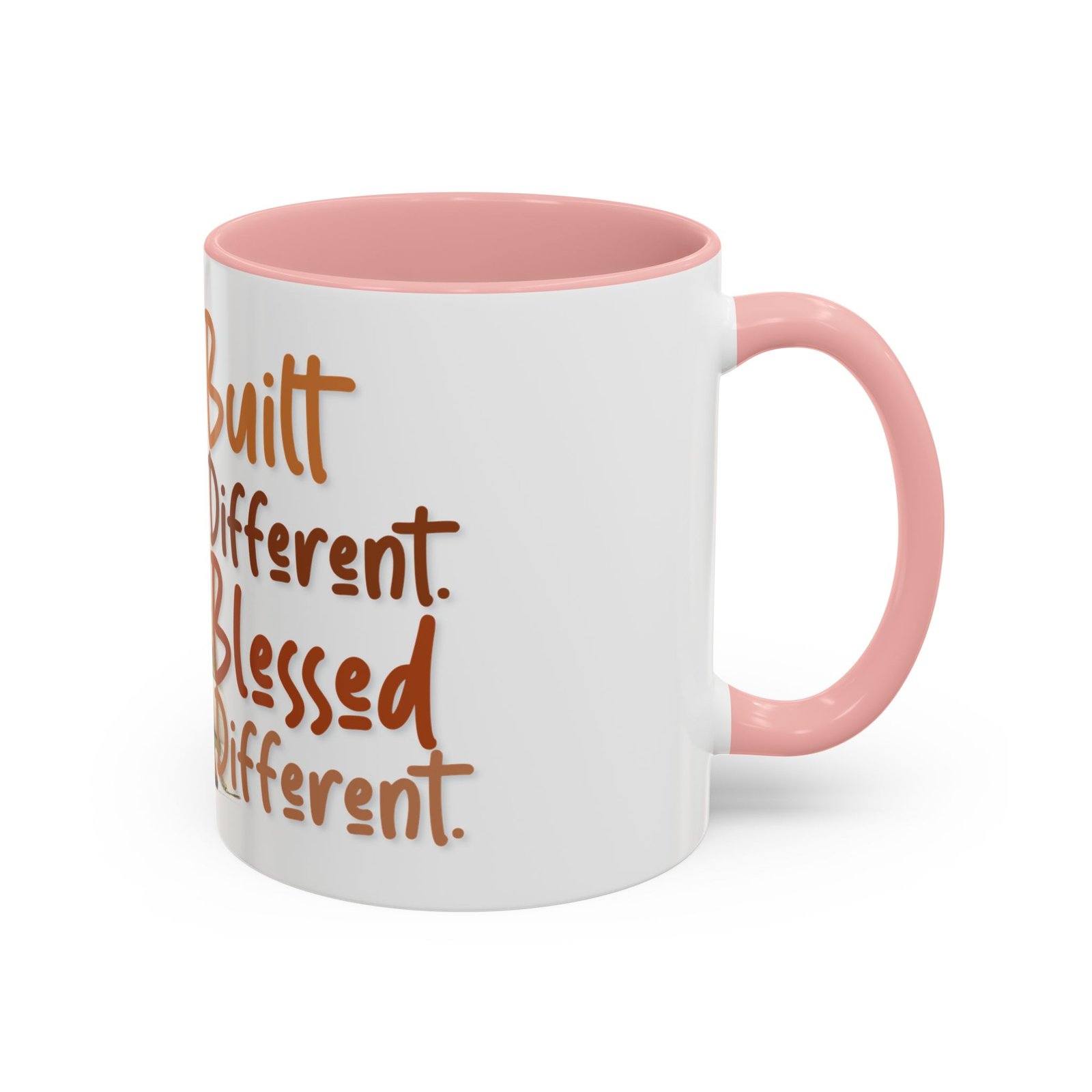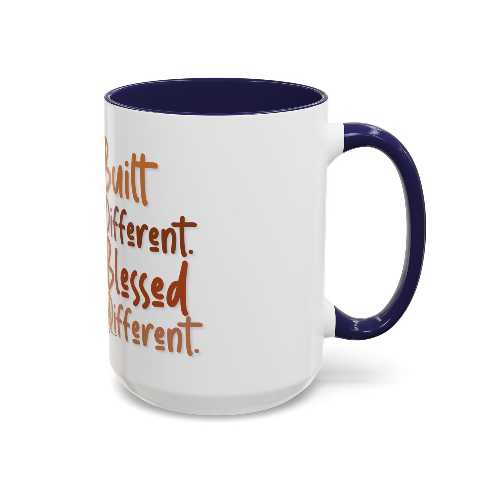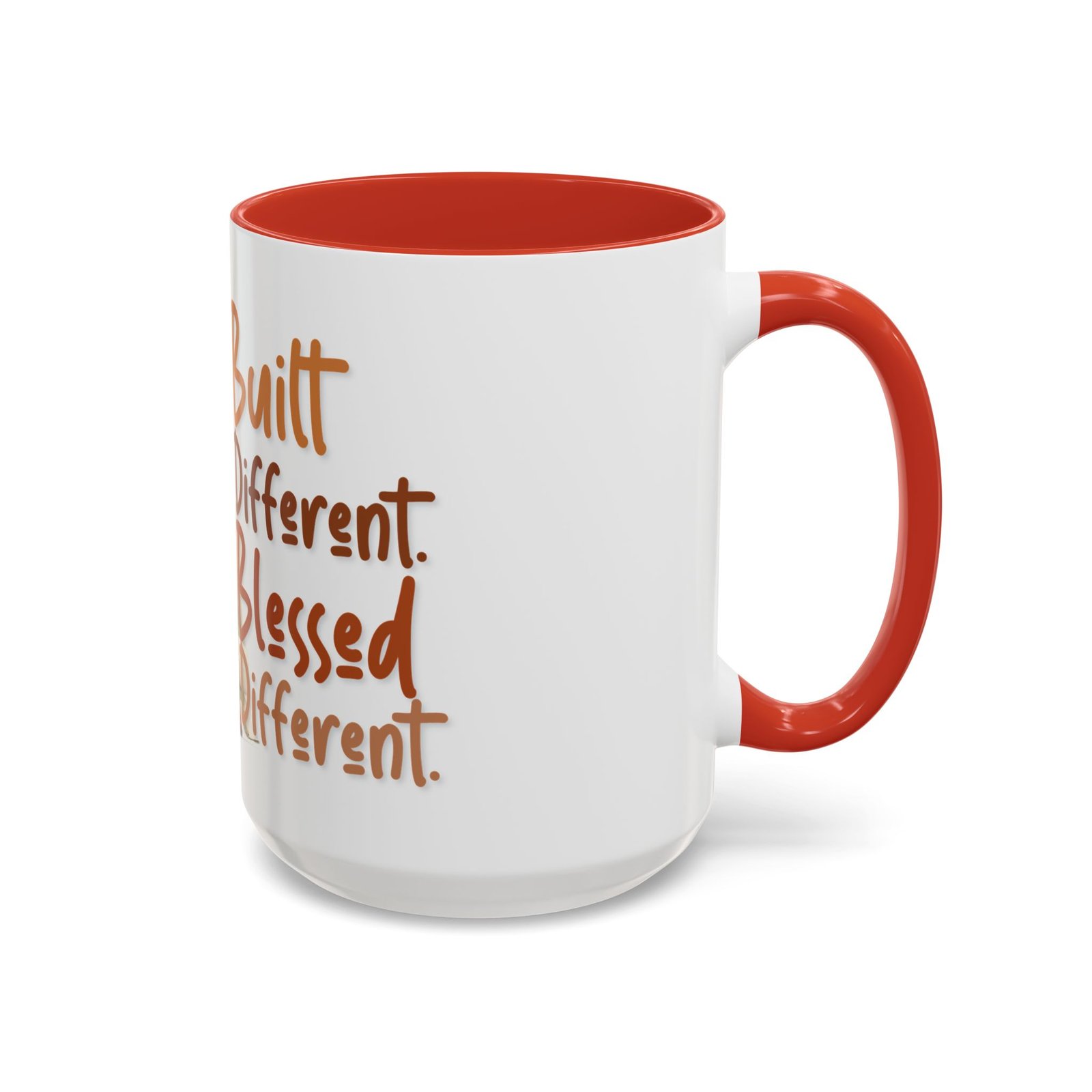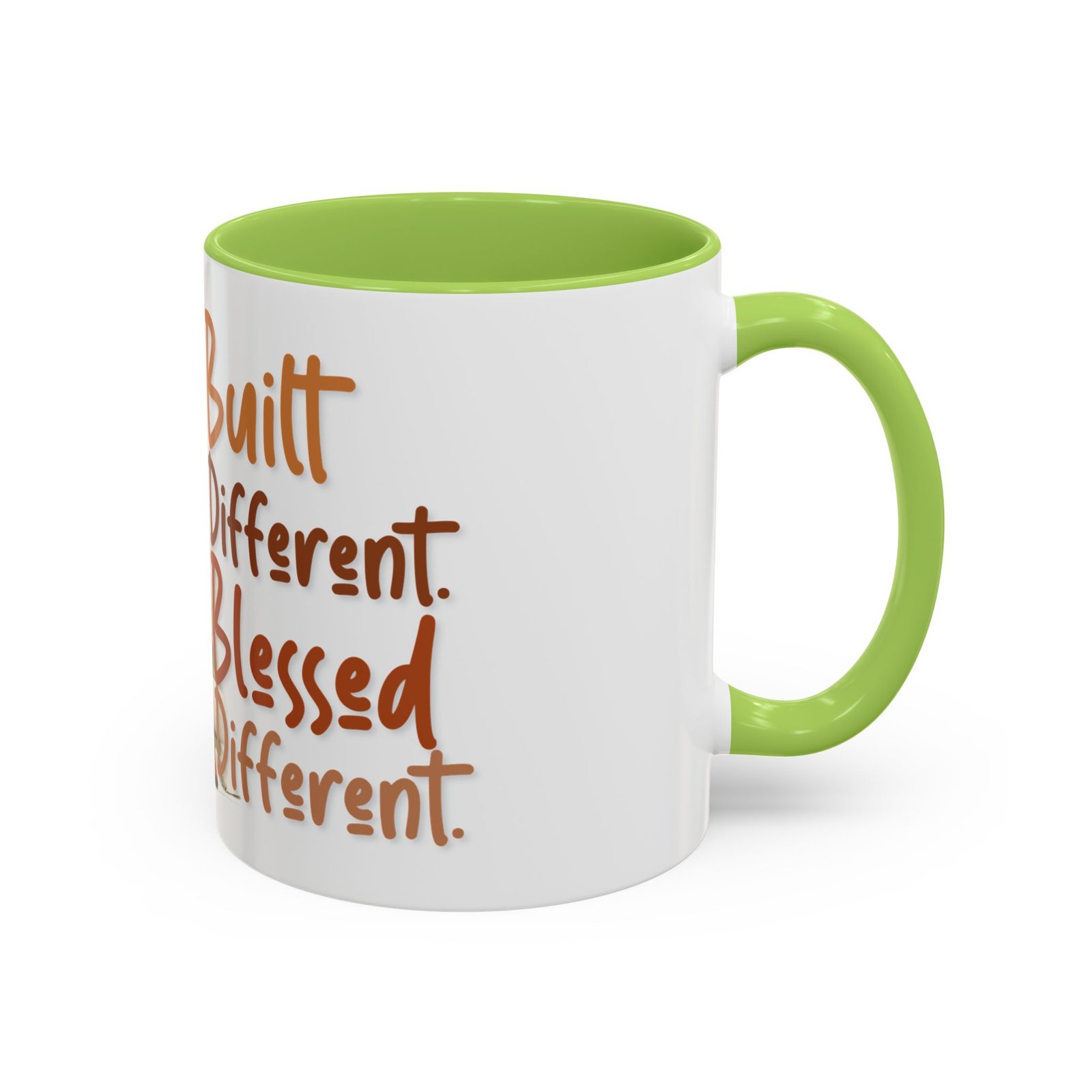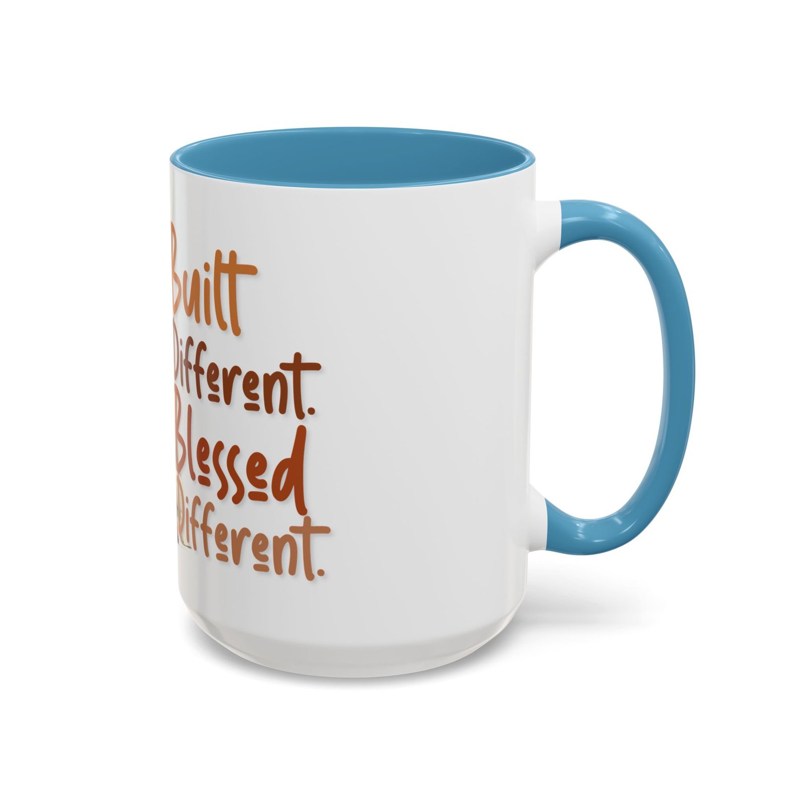 This glossy ceramic mug brings warmth and personality to every sip. With a bold, colorful interior and handle, it frames a playful illustration of a confident young woman and a handwritten-style message that celebrates being “built different” and “blessed different.” The contrast between the deep-colored handle and the bright white exterior makes the artwork pop, while the smooth C-shaped grip keeps the cup comfortable for daily use. Whether used at a cluttered desk or a cozy kitchen table, this mug adds a moment of affirmation and quiet joy to morning coffee, afternoon tea, or late-night study sessions.