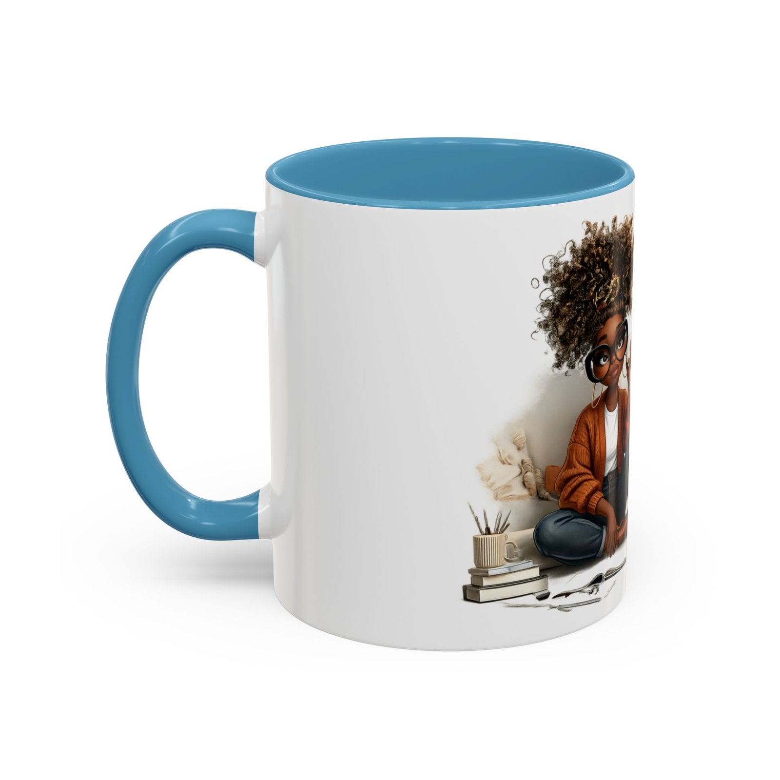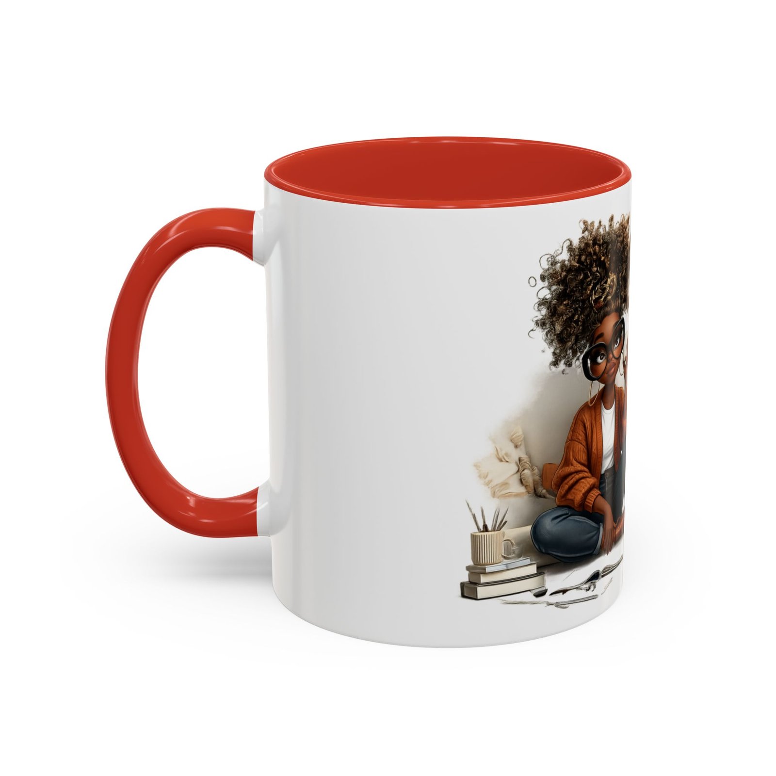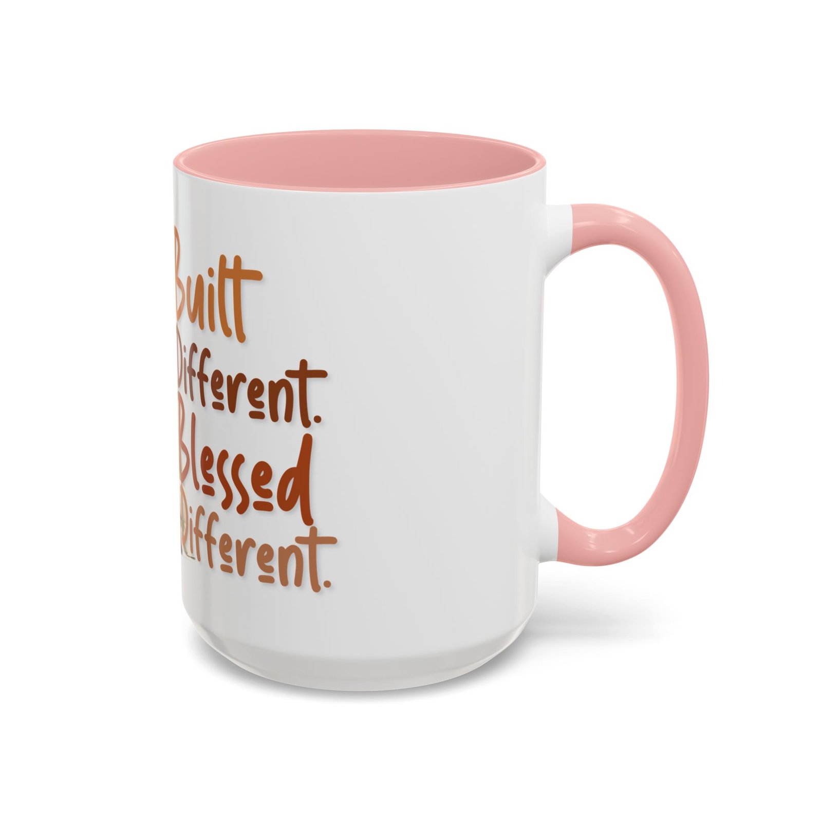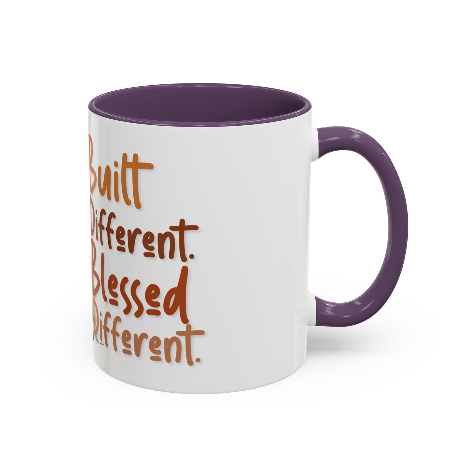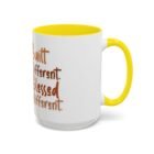 This glossy ceramic mug brings warmth and personality to every sip. With a bold, colorful interior and handle, it frames a playful illustration of a confident young woman and a handwritten-style message that celebrates being “built different” and “blessed different.” The contrast between the deep-colored handle and the bright white exterior makes the artwork pop, while the smooth C-shaped grip keeps the cup comfortable for daily use. Whether used at a cluttered desk or a cozy kitchen table, this mug adds a moment of affirmation and quiet joy to morning coffee, afternoon tea, or late-night study sessions.