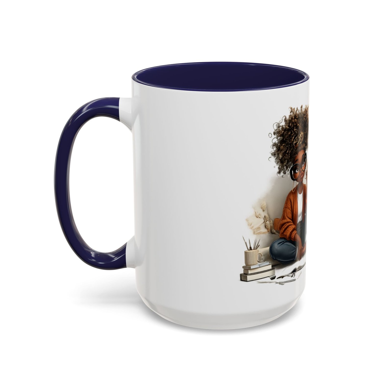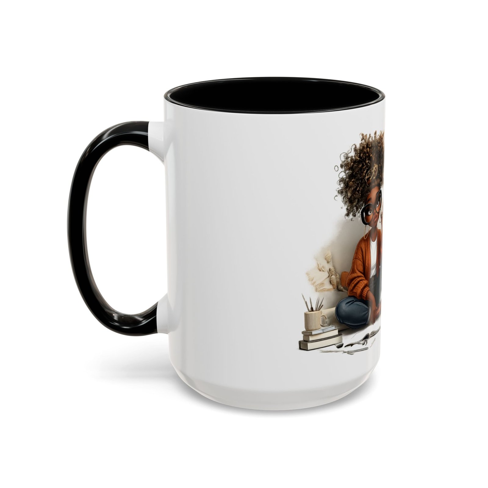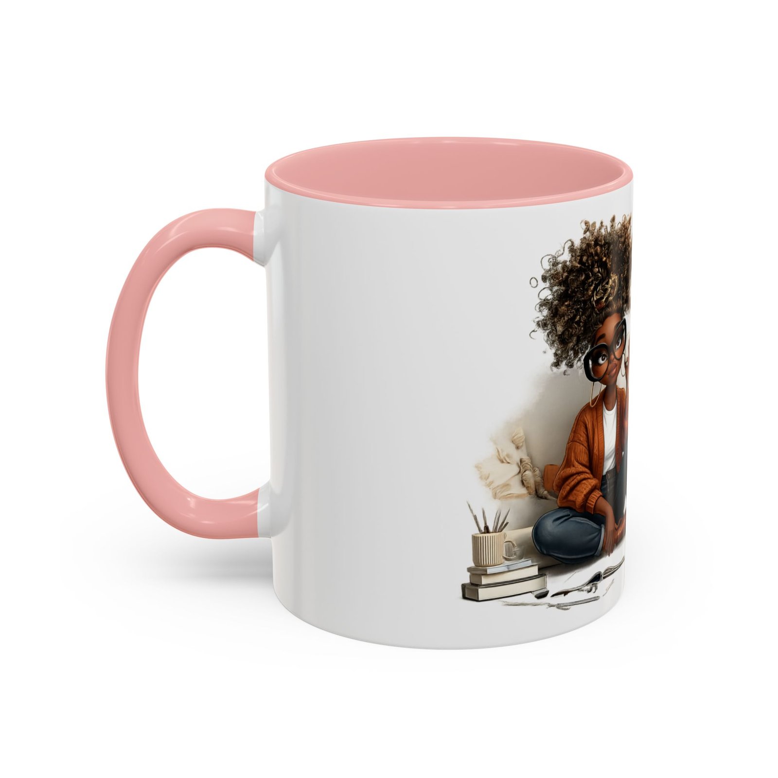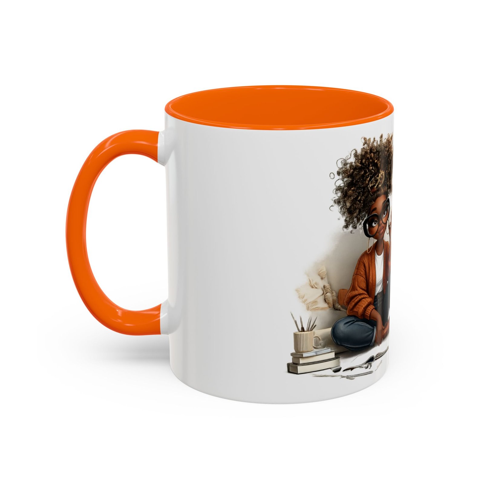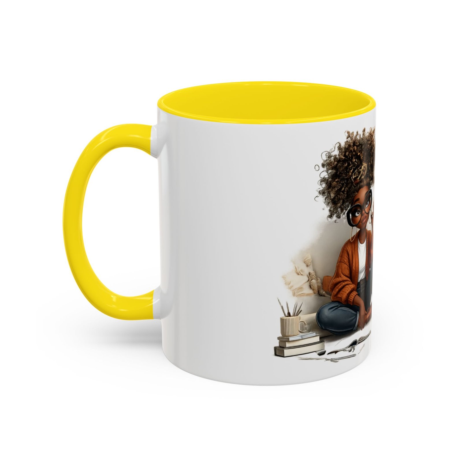 This glossy ceramic mug brings warmth and personality to every sip. With a bold, colorful interior and handle, it frames a playful illustration of a confident young woman and a handwritten-style message that celebrates being “built different” and “blessed different.” The contrast between the deep-colored handle and the bright white exterior makes the artwork pop, while the smooth C-shaped grip keeps the cup comfortable for daily use. Whether used at a cluttered desk or a cozy kitchen table, this mug adds a moment of affirmation and quiet joy to morning coffee, afternoon tea, or late-night study sessions.