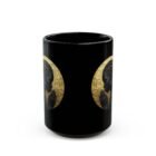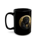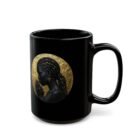 This glossy black ceramic mug carries a quiet, meditative elegance. A silhouette of a woman in profile sits against a textured gold halo, bringing warmth and ritual to your morning coffee or evening tea. The high-contrast print pops on the deep black surface, making the artwork feel like a small altar on your countertop. It’s made to be handled — a comfortable C-shaped grip, sturdy ceramic body, and a gloss finish that deepens the tones. Use it during slow mornings, reflective moments, or as part of a calming ritual at home.