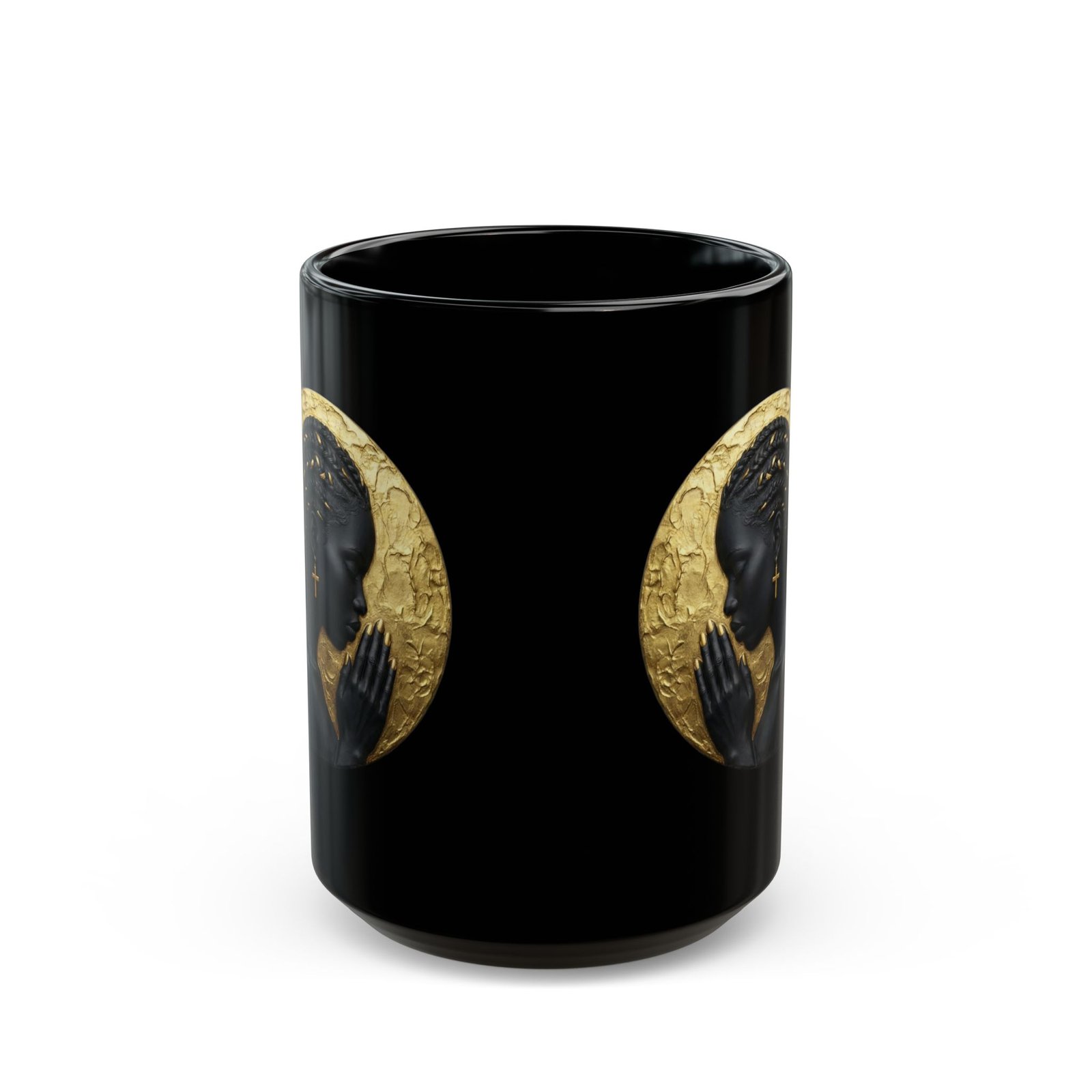 Black Prayer Portrait Mug | African Woman Profile with Gold Halo Series 3
