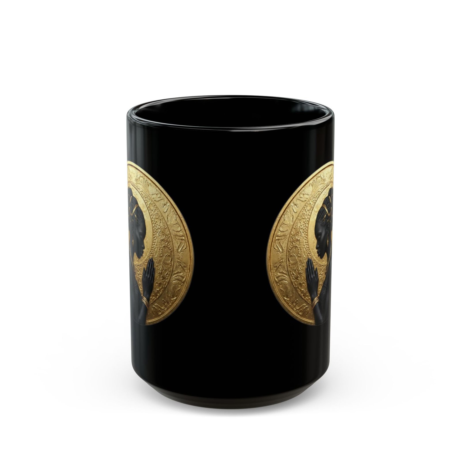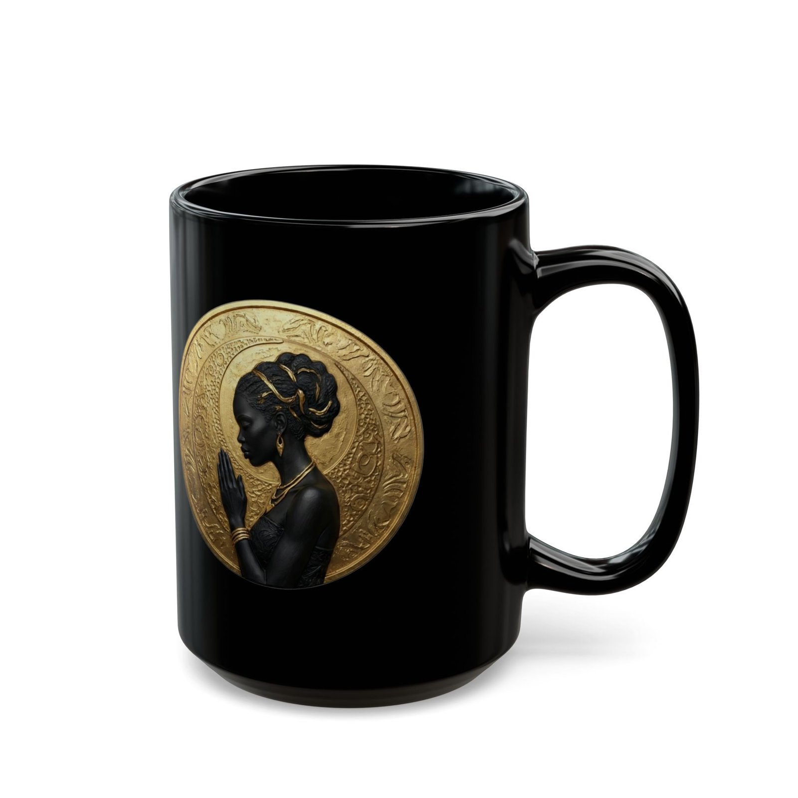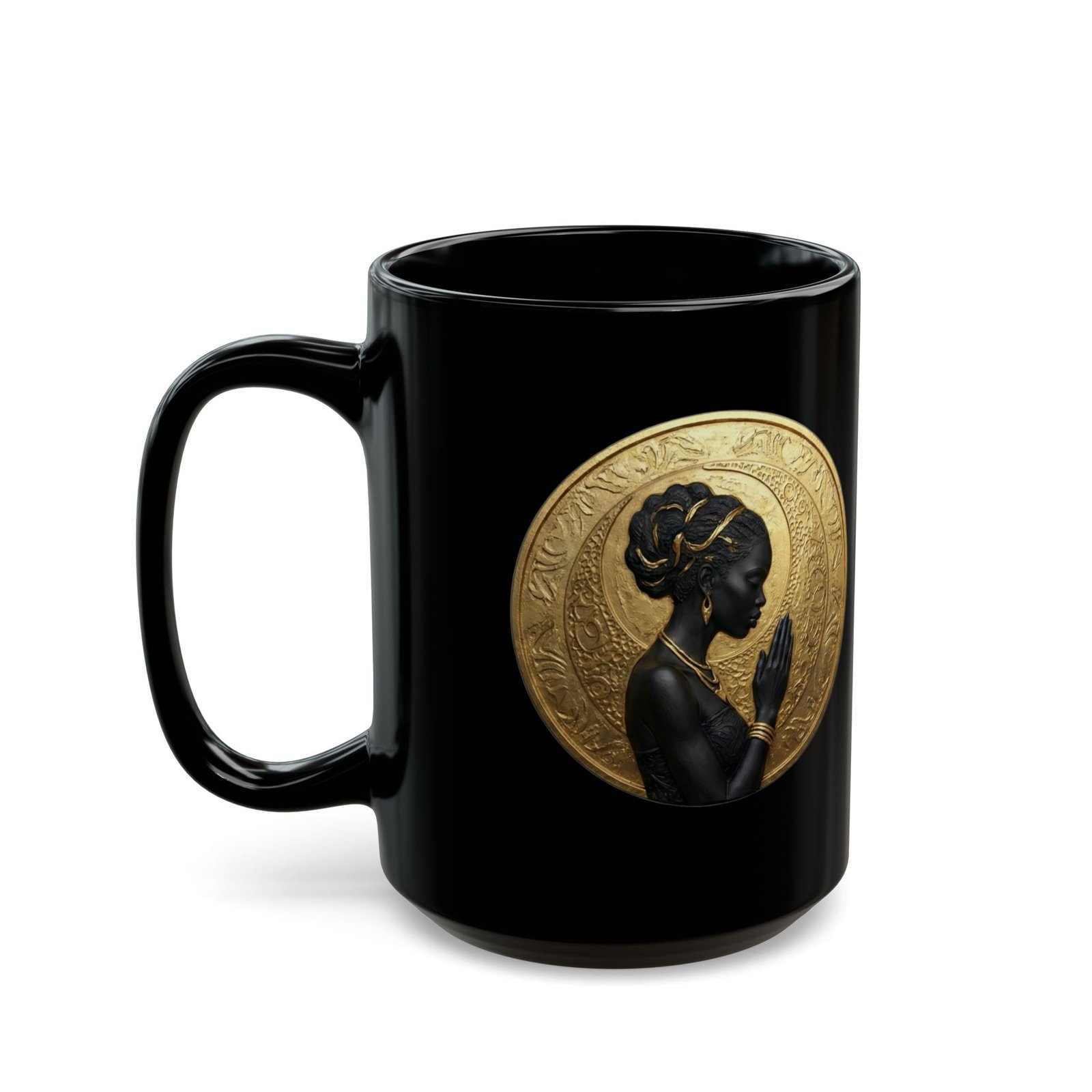 Black Prayer Portrait Mug | African Woman Profile with Gold Halo Series 4