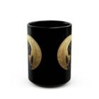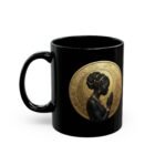 This glossy black ceramic mug carries a quiet, meditative elegance. A silhouette of a woman in profile sits against a textured gold halo, bringing warmth and ritual to your morning coffee or evening tea. The high-contrast print pops on the deep black surface, making the artwork feel like a small altar on your countertop. It’s made to be handled — a comfortable C-shaped grip, sturdy ceramic body, and a gloss finish that deepens the tones. Use it during slow mornings, reflective moments, or as part of a calming ritual at home.